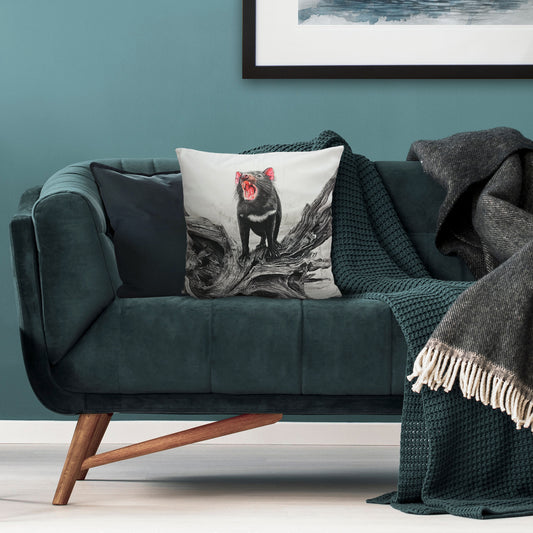 Cushion cover featuring 'Driftwood Thylacine' artwork