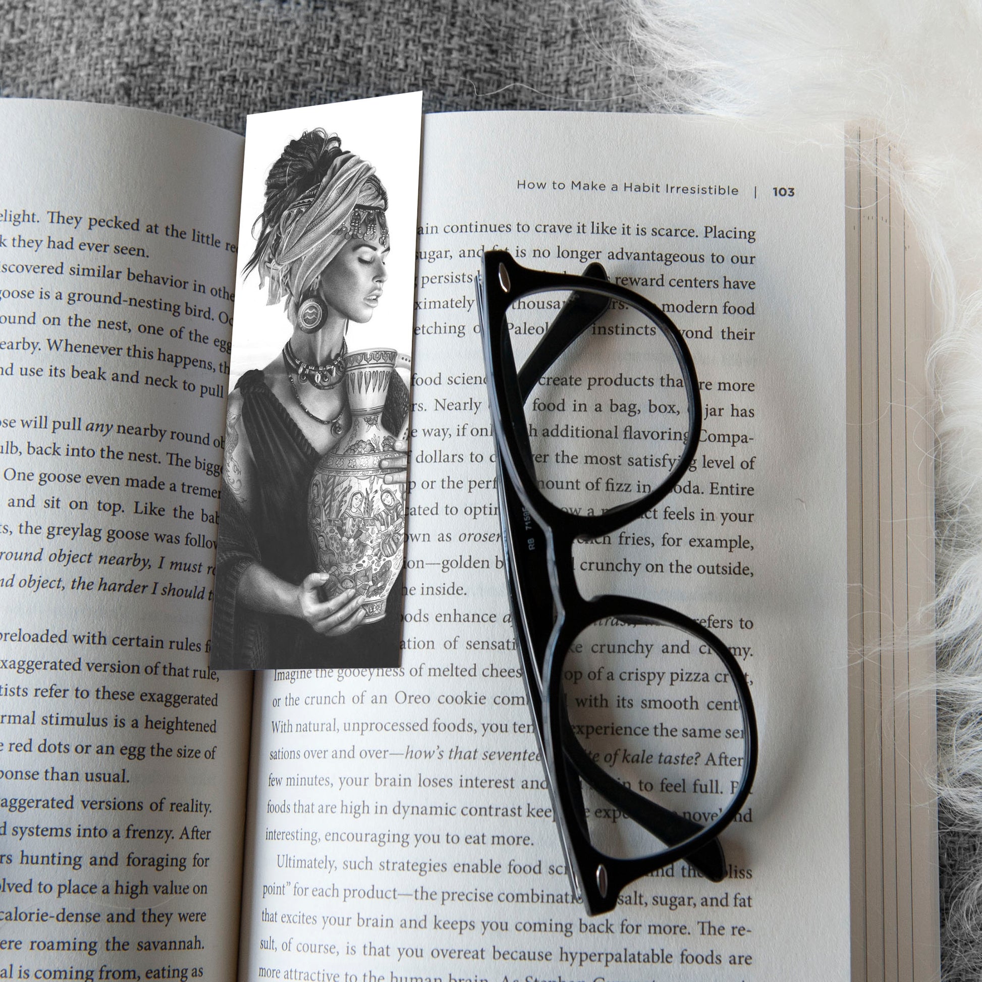 Glossy bookmark featuring charcoal and pencil drawing of 'Aquarius'. 4.5 x 14cm.