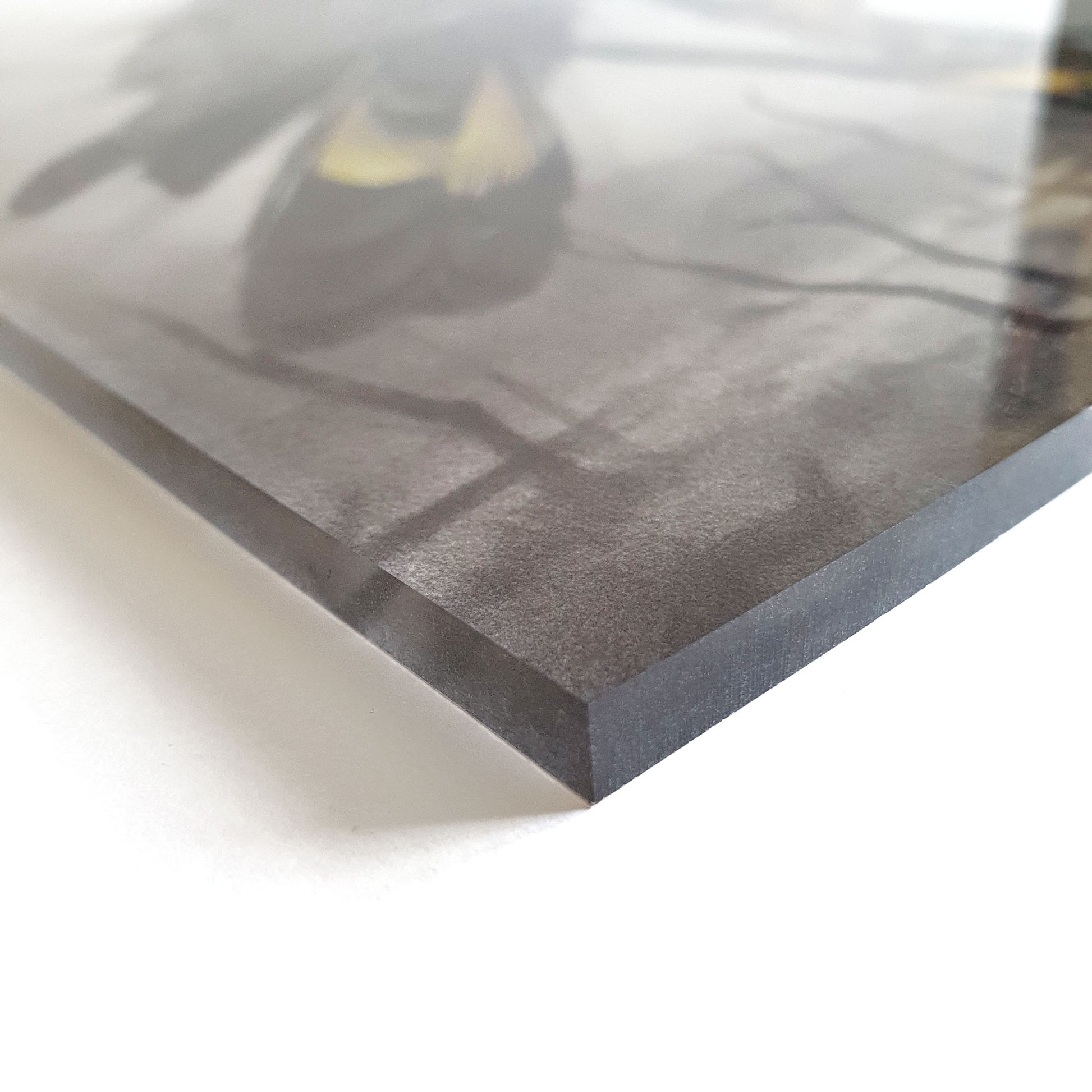 Acrylic print of 'Black Cockatoo' charcoal and colour pencil drawing. This contemporary frameless art print is perfect for adding a touch of class to your interior. High quality image printed on 6mm acrylic glass panel using the latest technology. Prints are water resistant and are suitable for hanging in bathrooms, kitchens and other wet areas. Quality fittings are mounted on the back of the print to allow for easy hanging from a standard picture hook. Larger prints have 2 fittings.