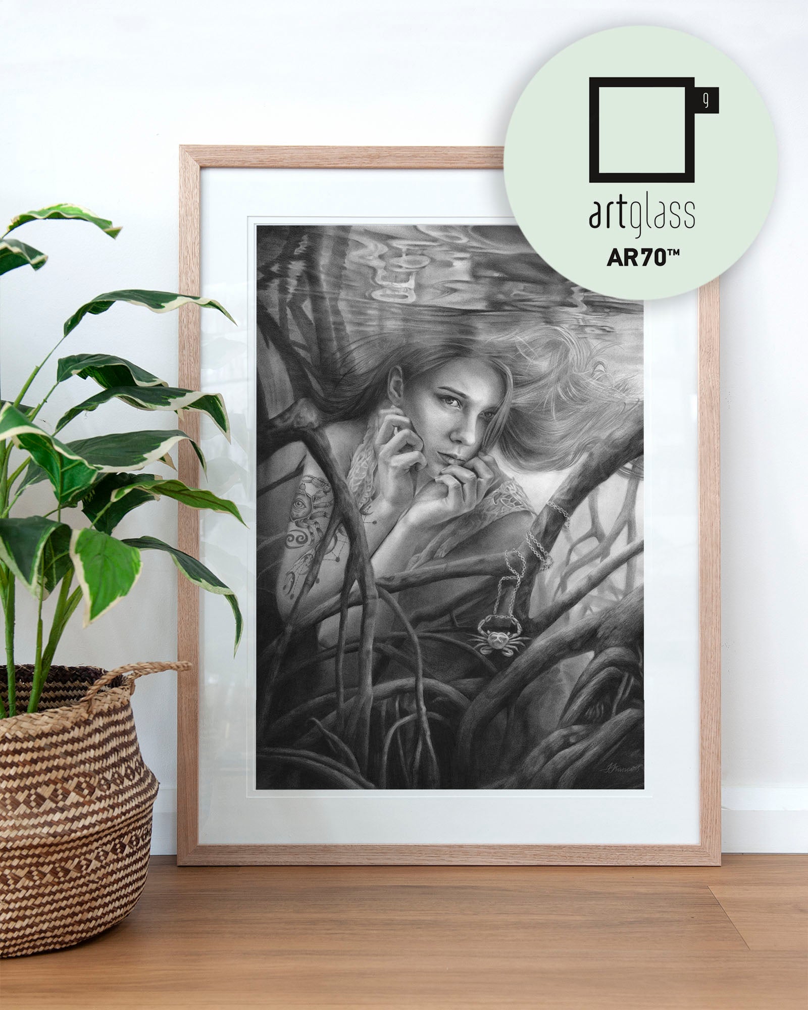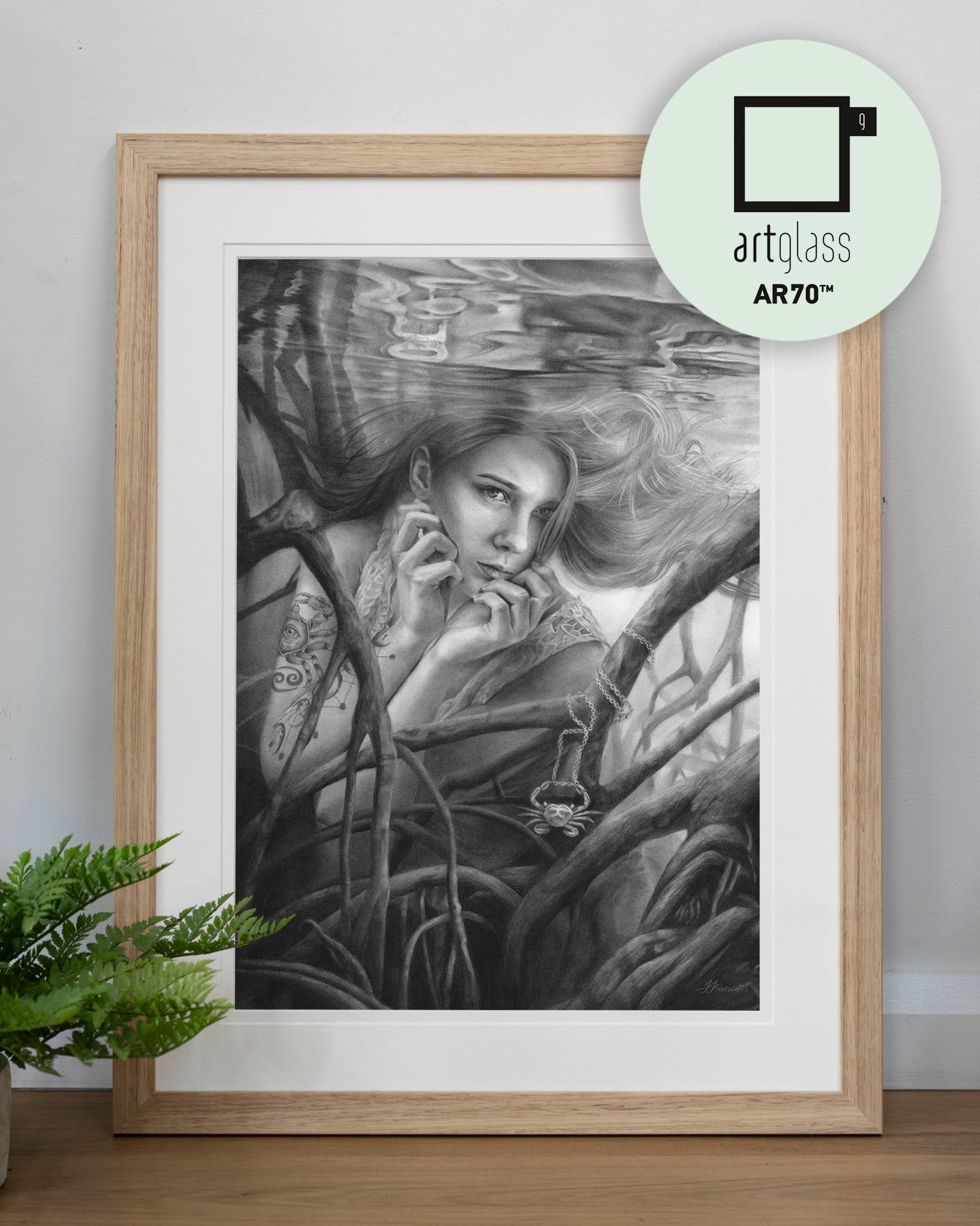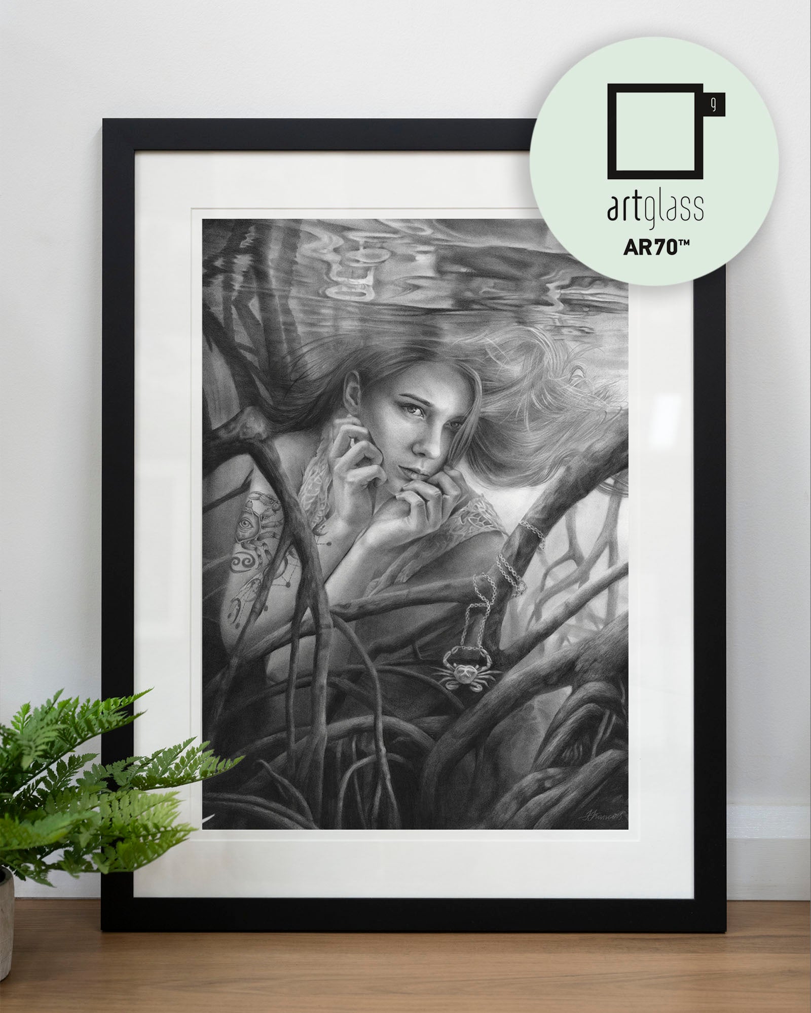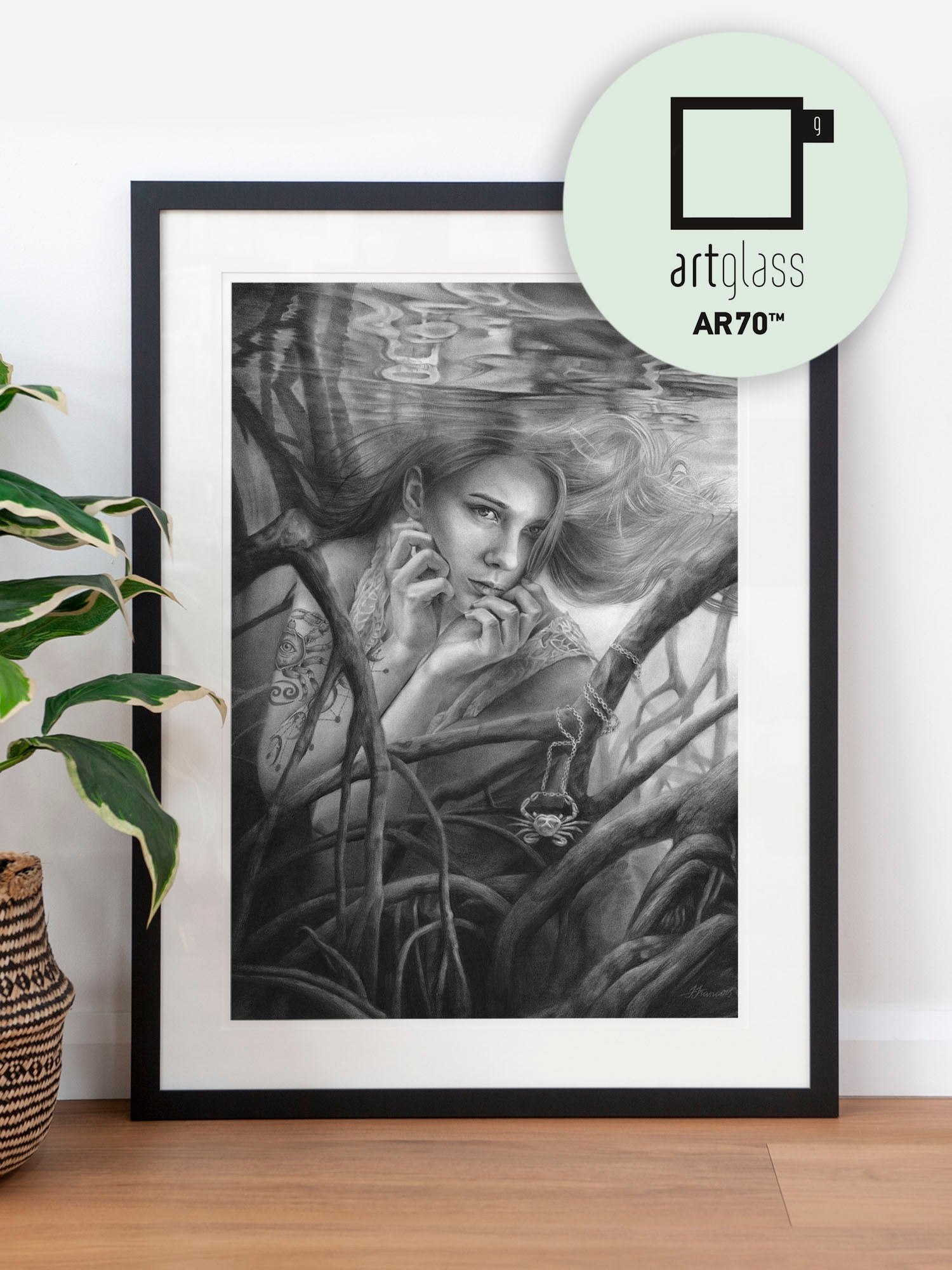 Archival print on cotton art paper. Charcoal drawing of a woman representing Cancer in the signs of the Zodiac.