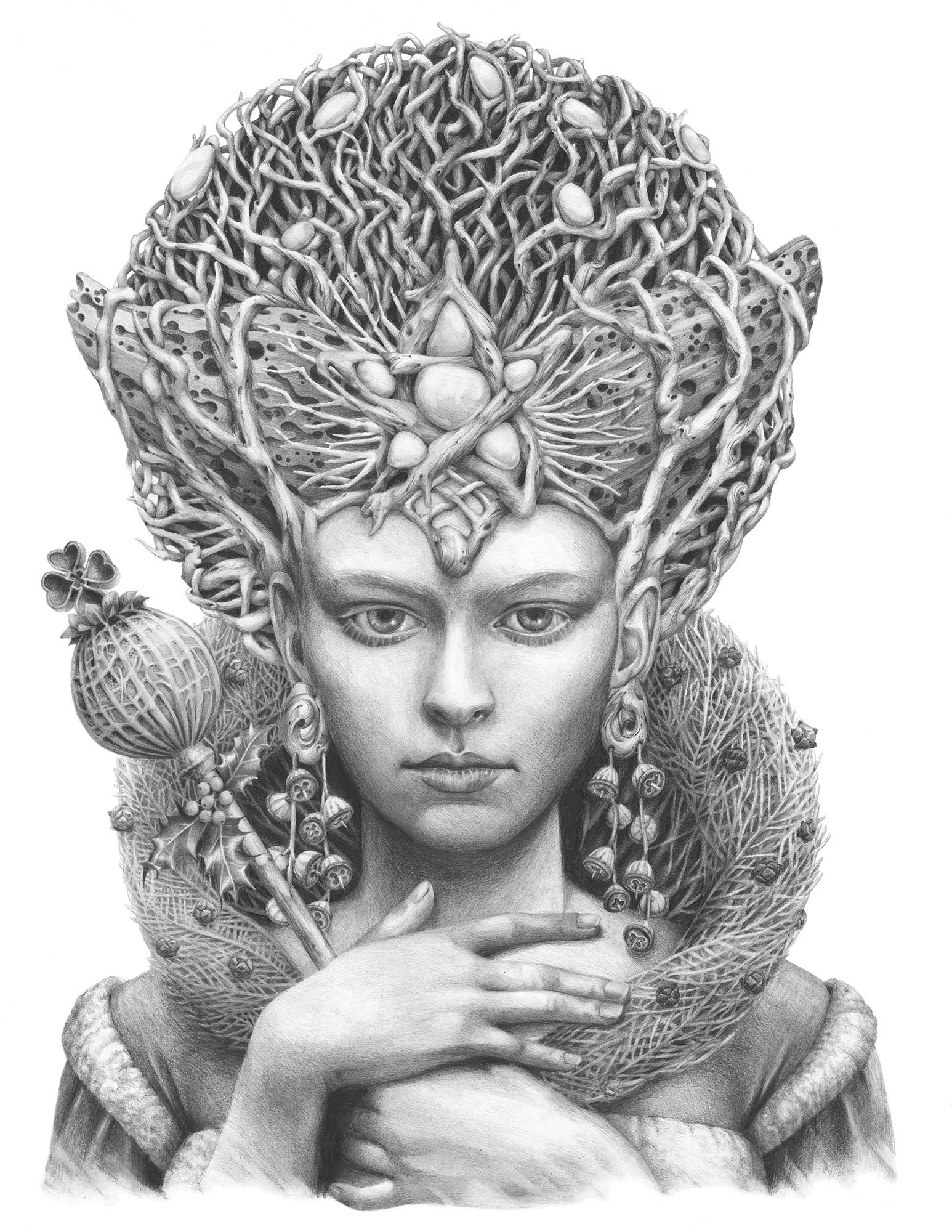 Glossy greeting card featuring 'Christmas Angel' graphite pencil drawing. Folded card is 11.5 x 18cm, blank inside and comes with envelope sealed in a clear cello bag.