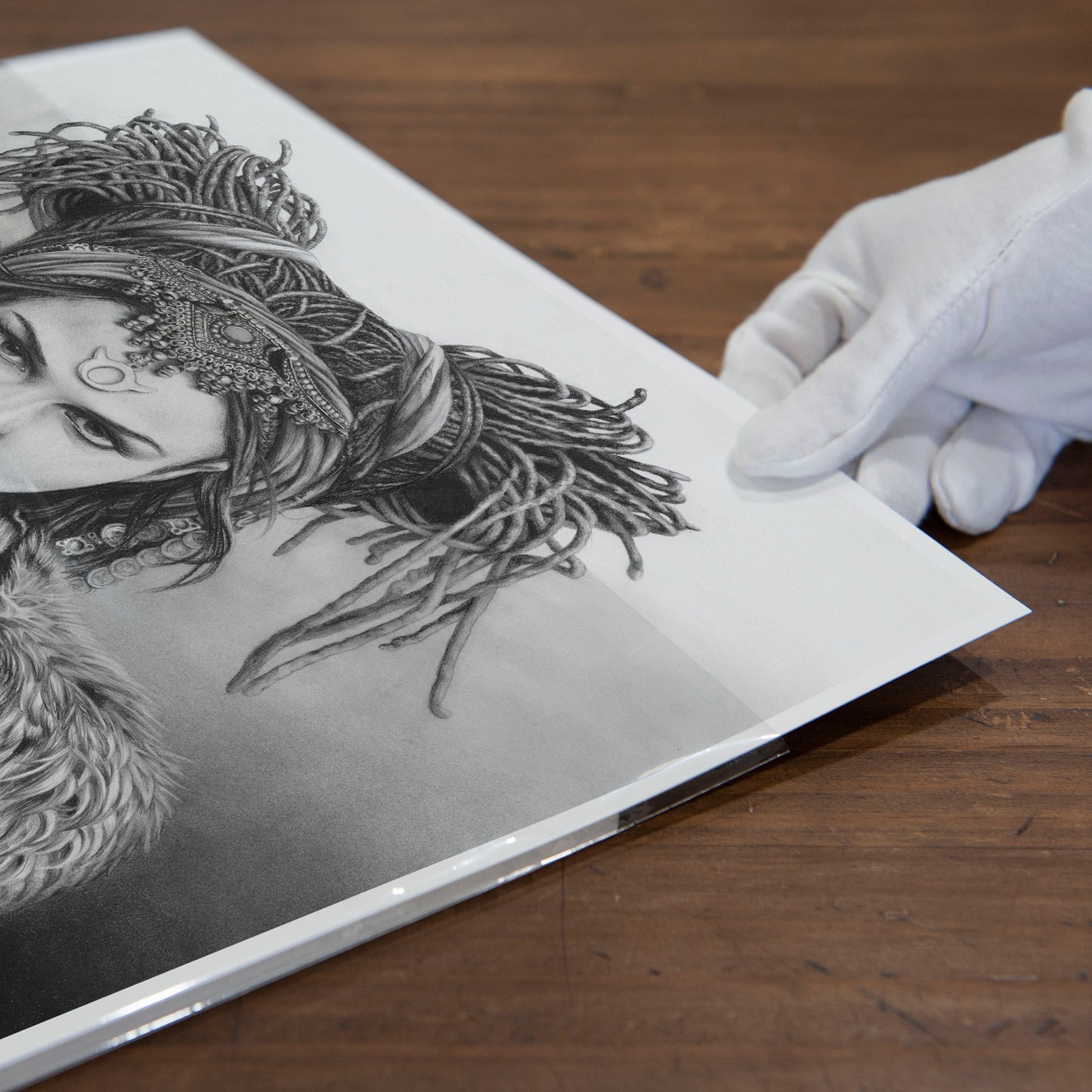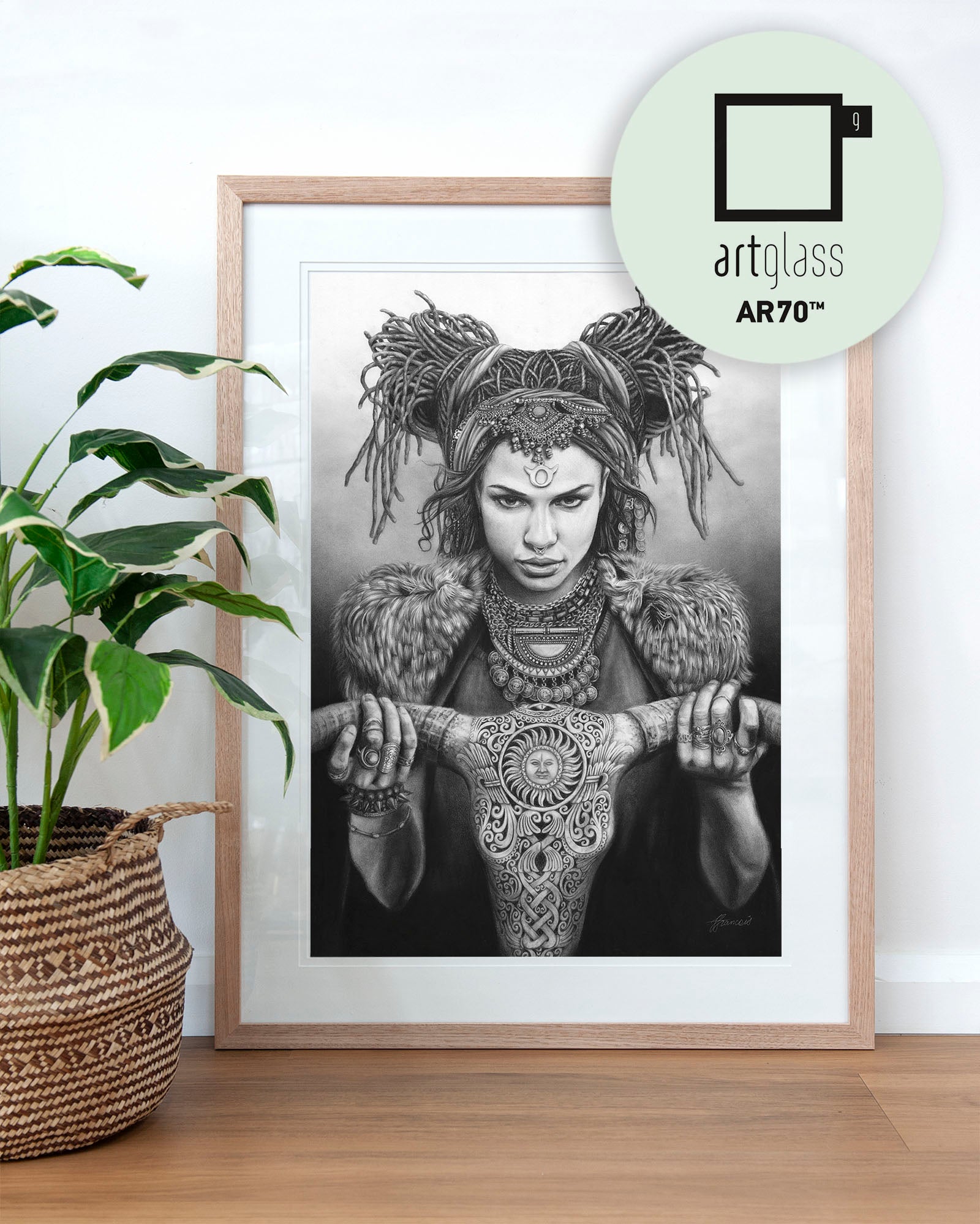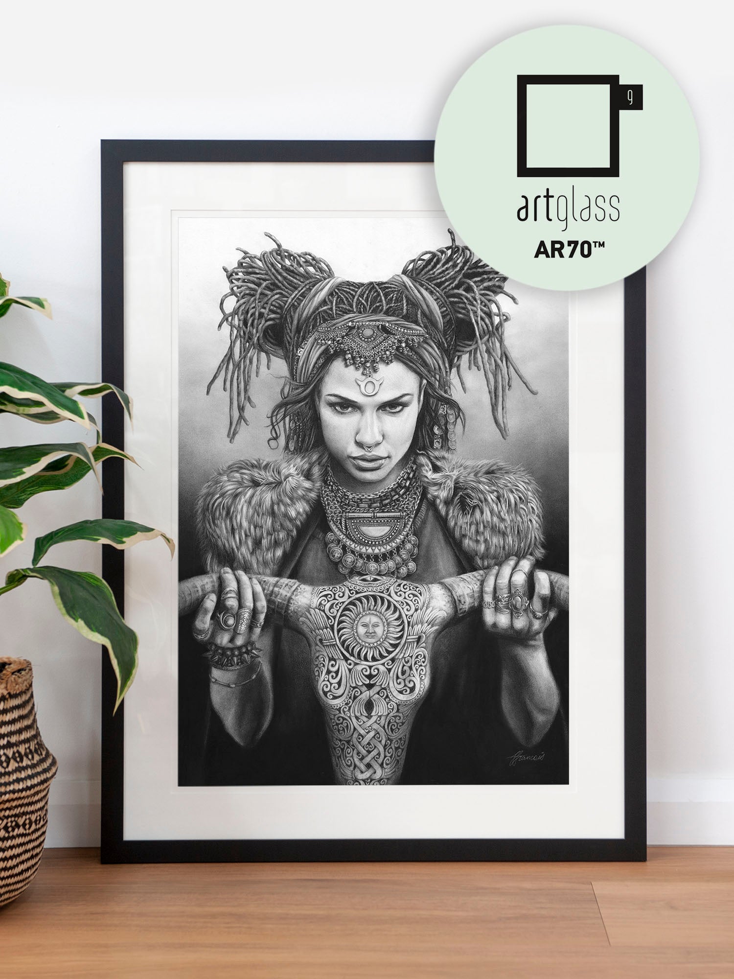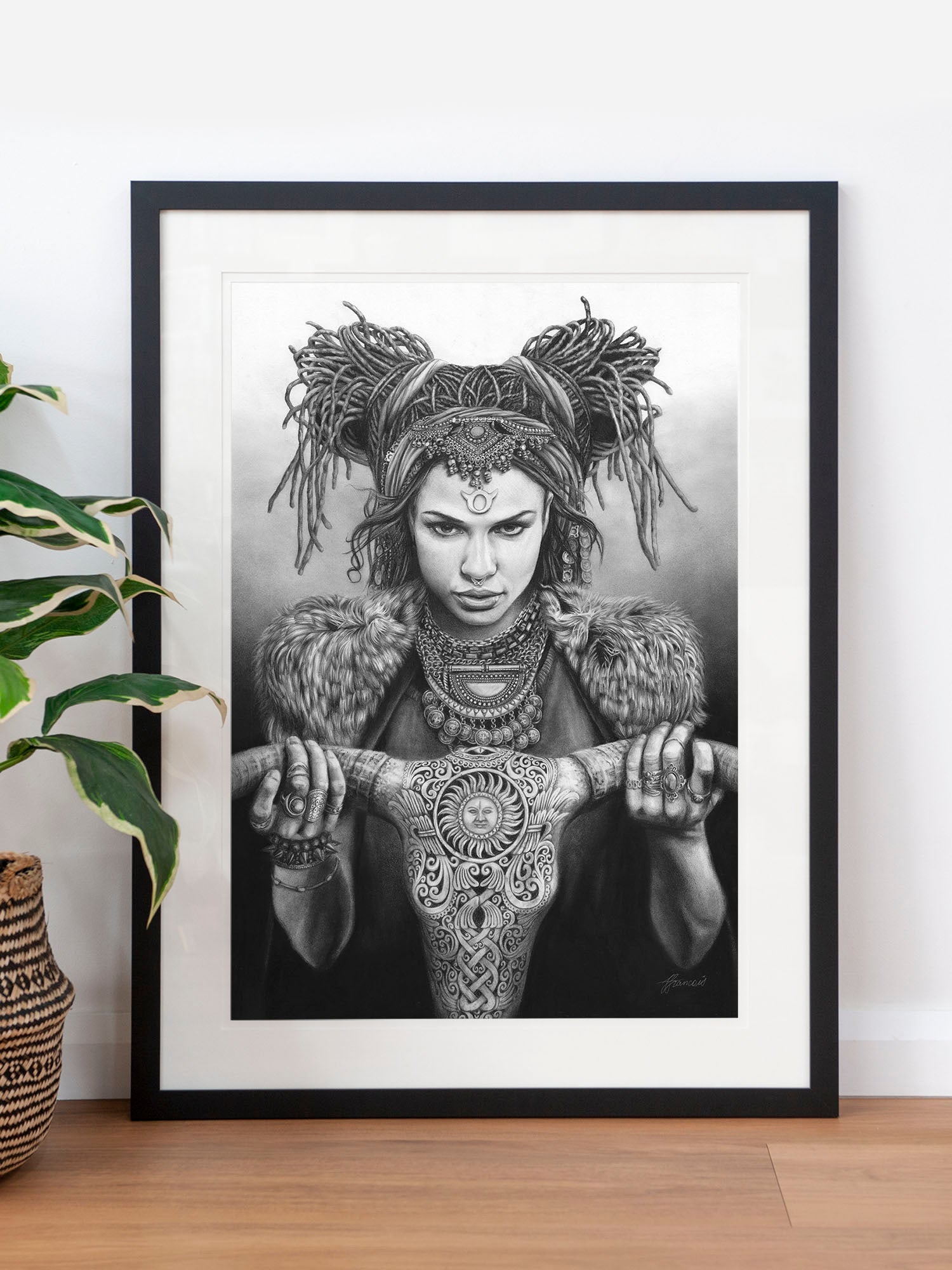 Archival print on cotton art paper. Charcoal and pencil drawing of a woman representing Taurus in the signs of the Zodiac.