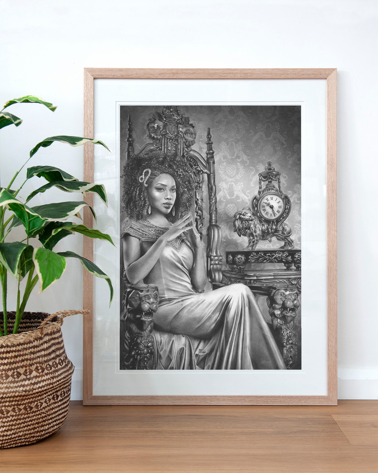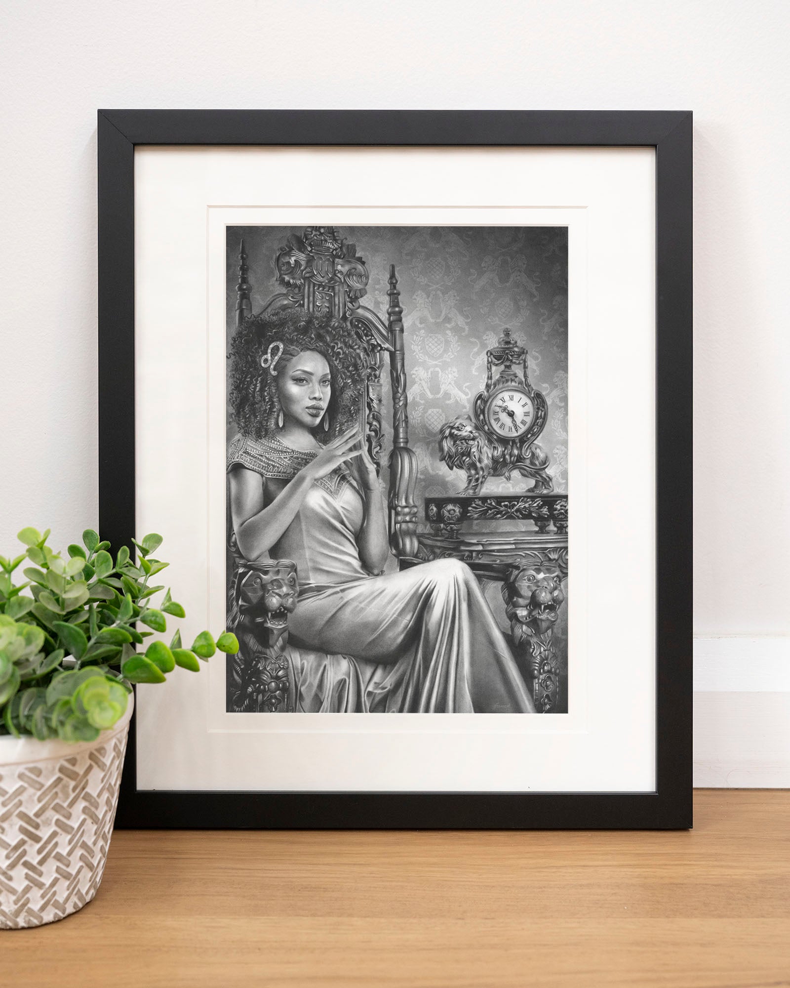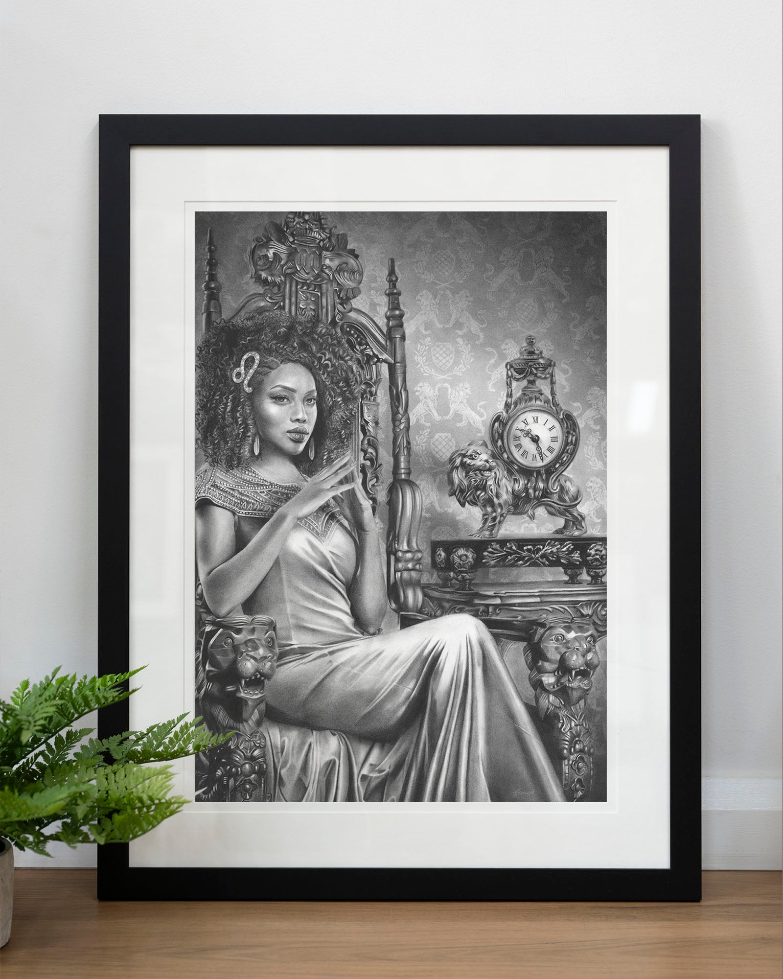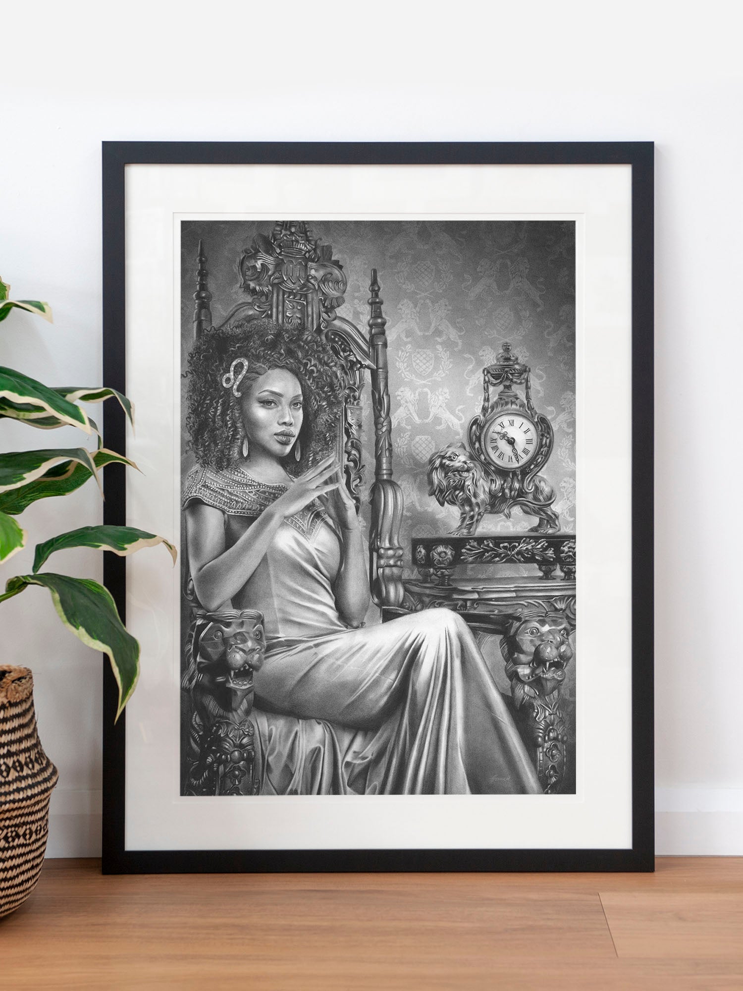 Archival print on cotton art paper. Charcoal and pencil drawing of a woman representing Leo in the signs of the Zodiac.