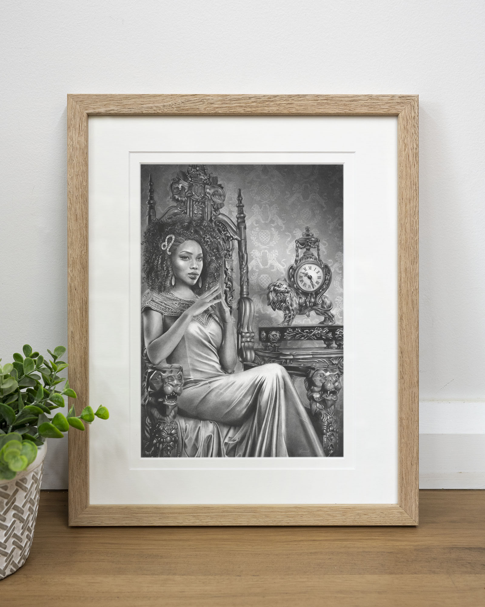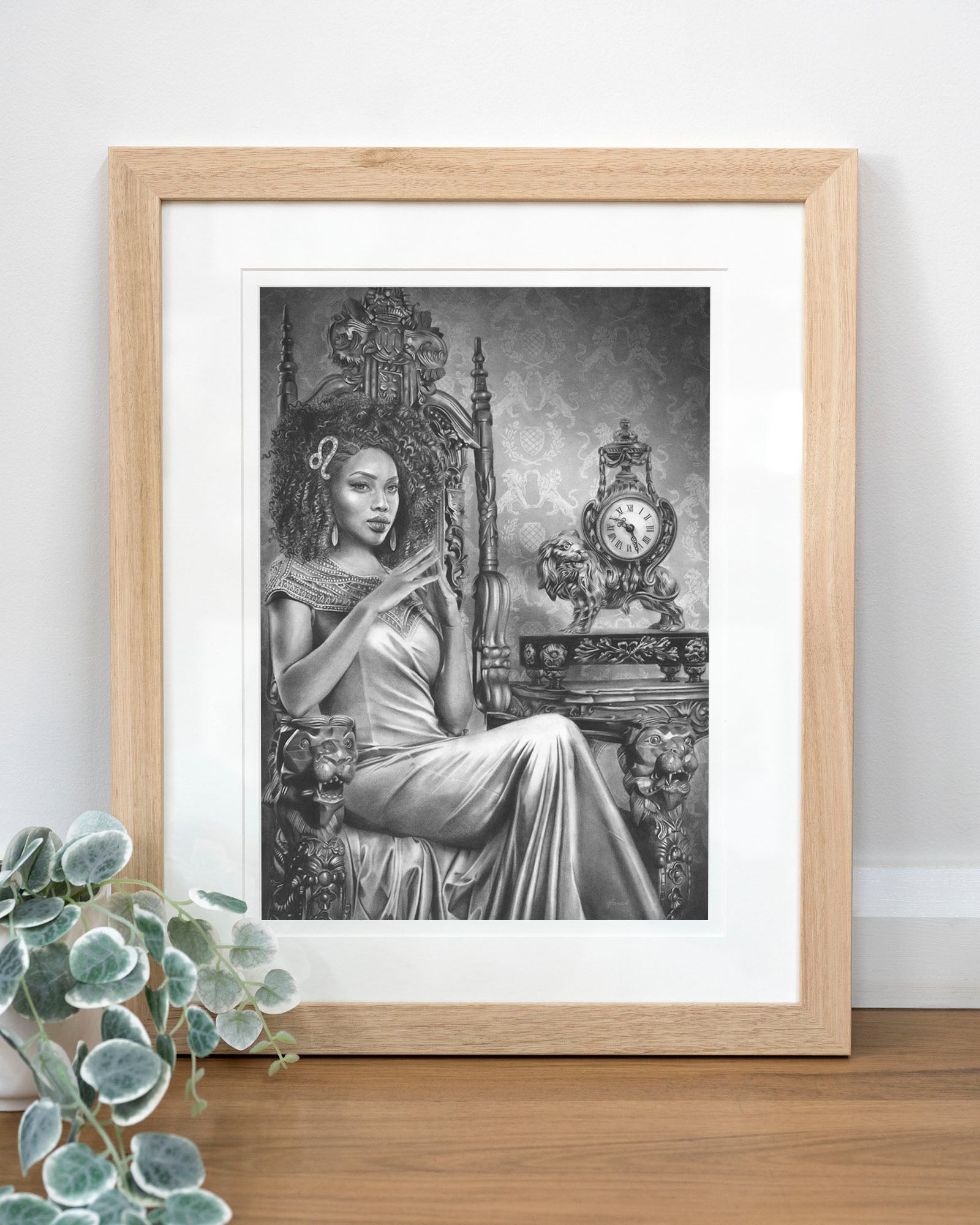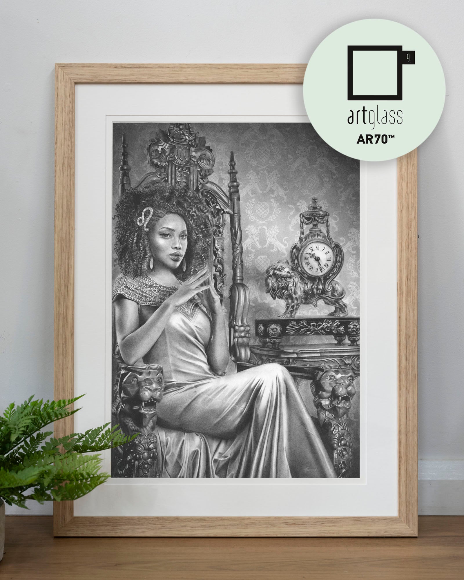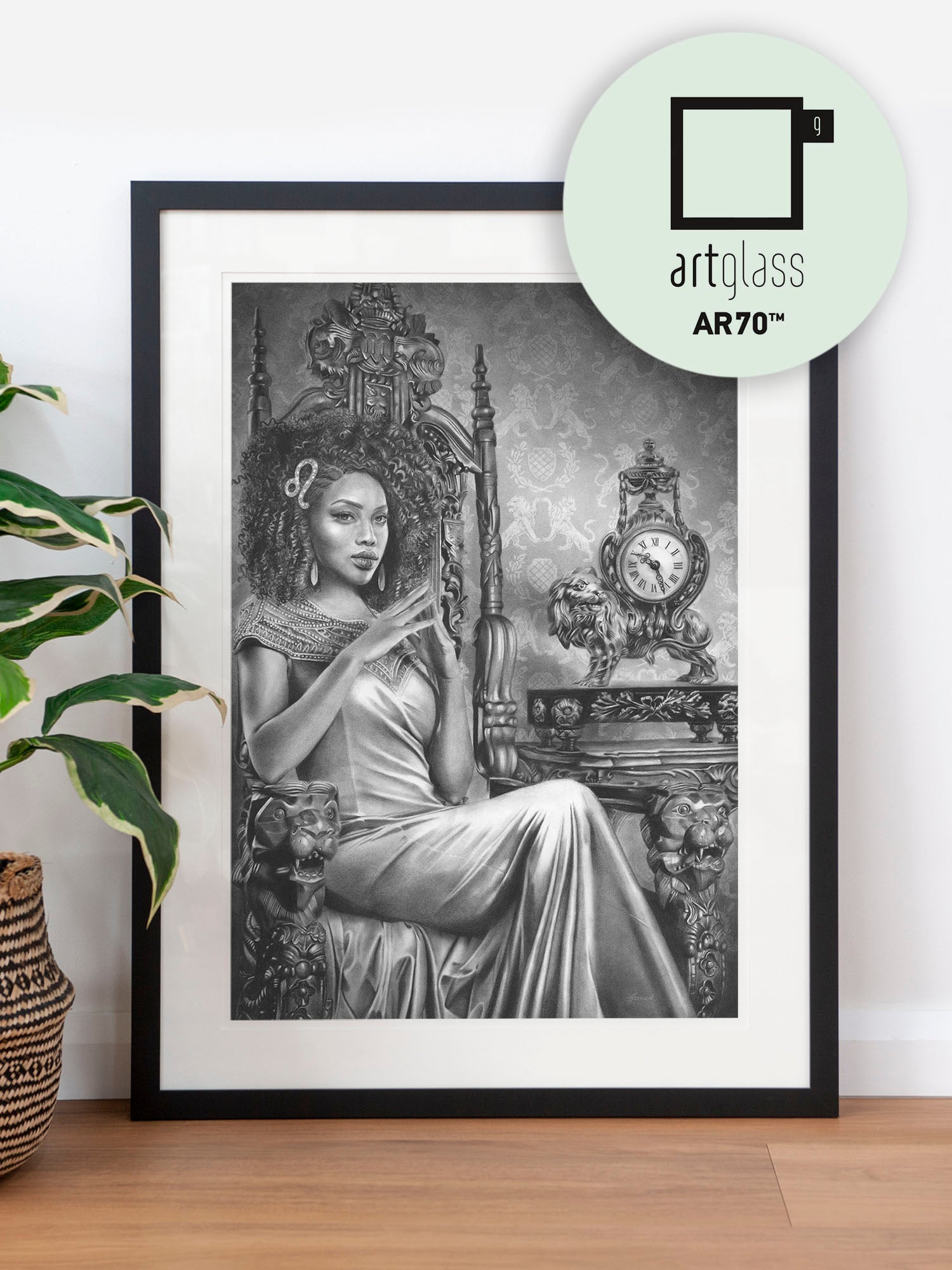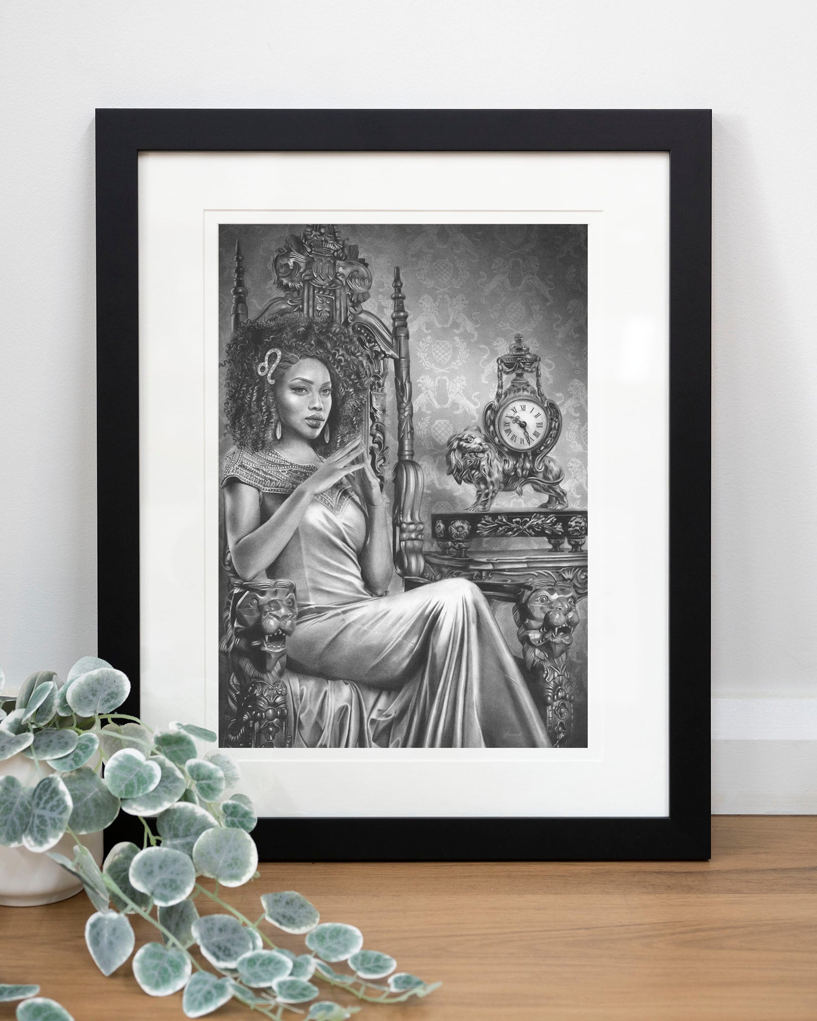Archival print on cotton art paper. Charcoal and pencil drawing of a woman representing Leo in the signs of the Zodiac.