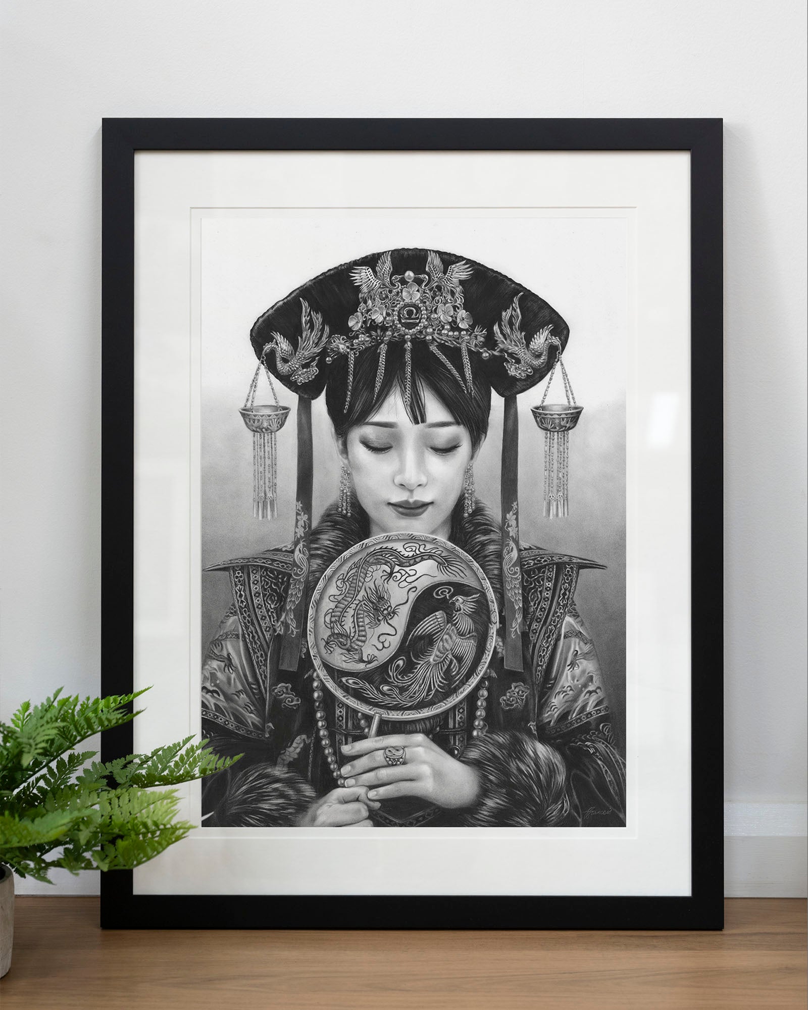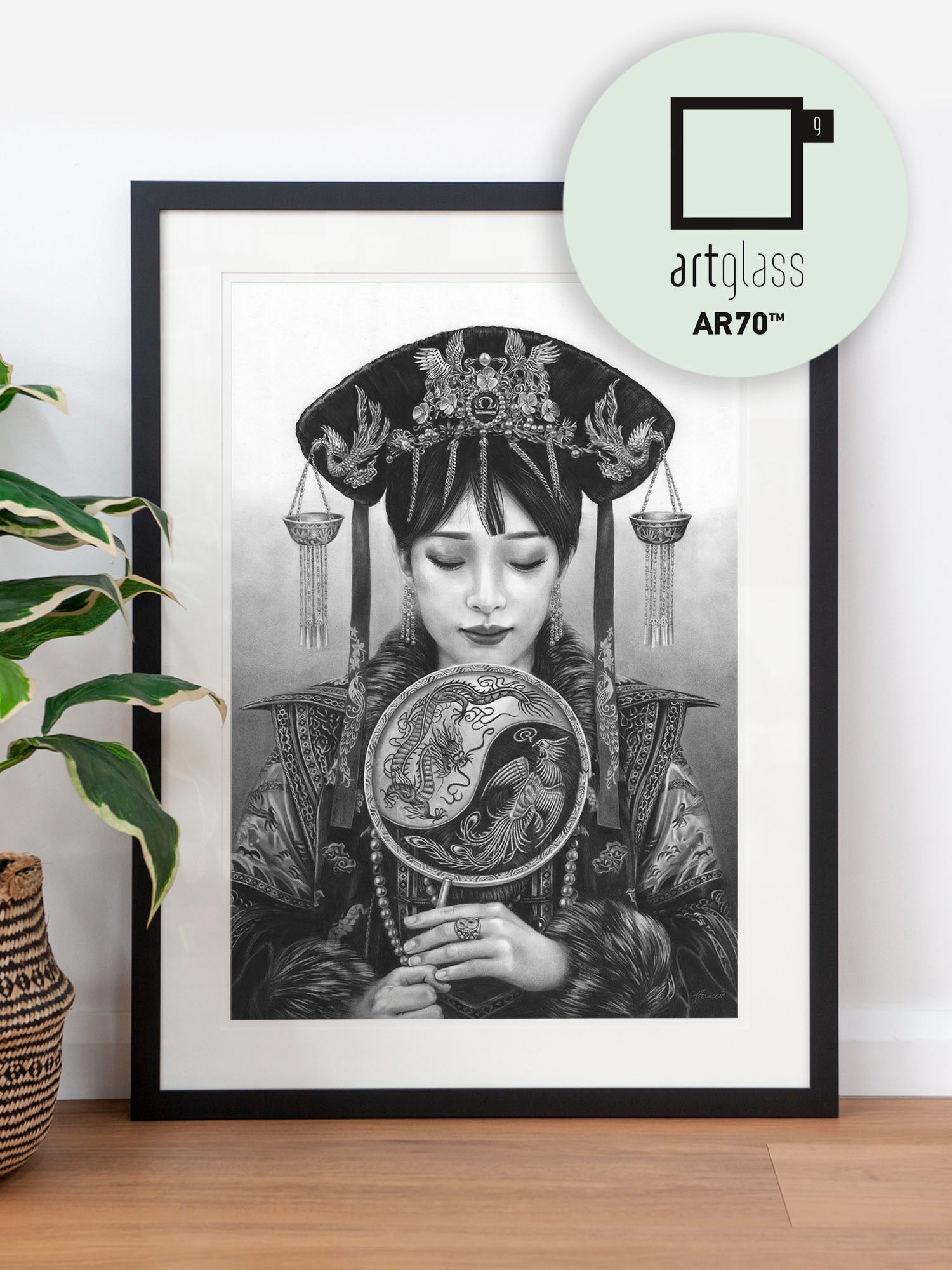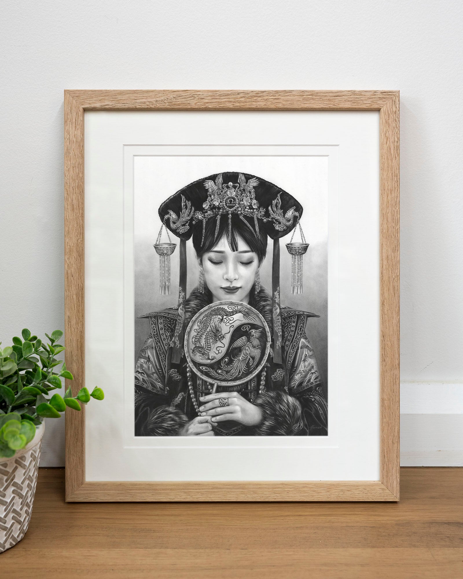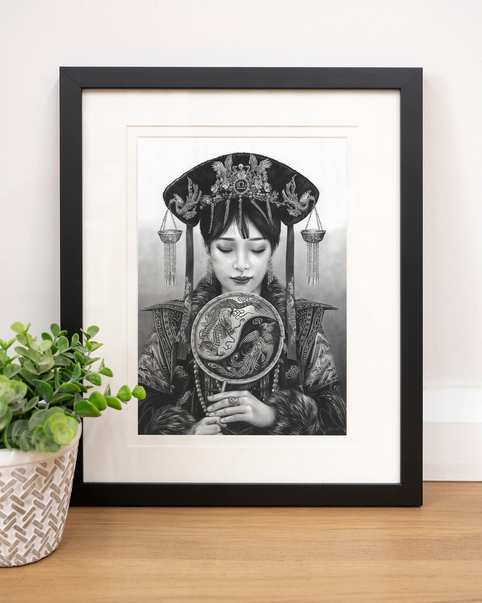 Archival print on cotton art paper. Charcoal and pencil drawing of a woman representing Libra in the signs of the Zodiac.