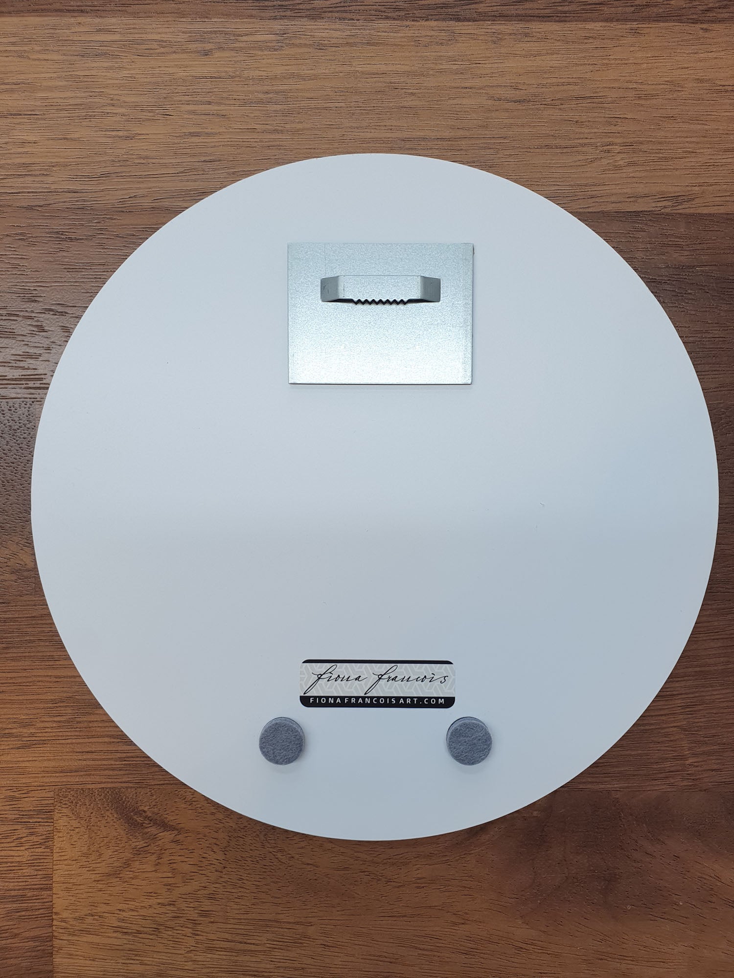 Circular acrylic print of 'Mumma Buzz' graphite and colour pencil drawing. 30 cm diameter, this contemporary frameless art print is perfect for adding a touch of class to your interior. Collect a few and hang them in a small cluster for a modern curated look. High quality image printed on 6mm acrylic glass panel using the latest technology. Prints are water resistant and are suitable for hanging in bathrooms, kitchens and other wet areas. Quality fittings are mounted on the back of the print to allow for easy hanging from a standard picture hook.