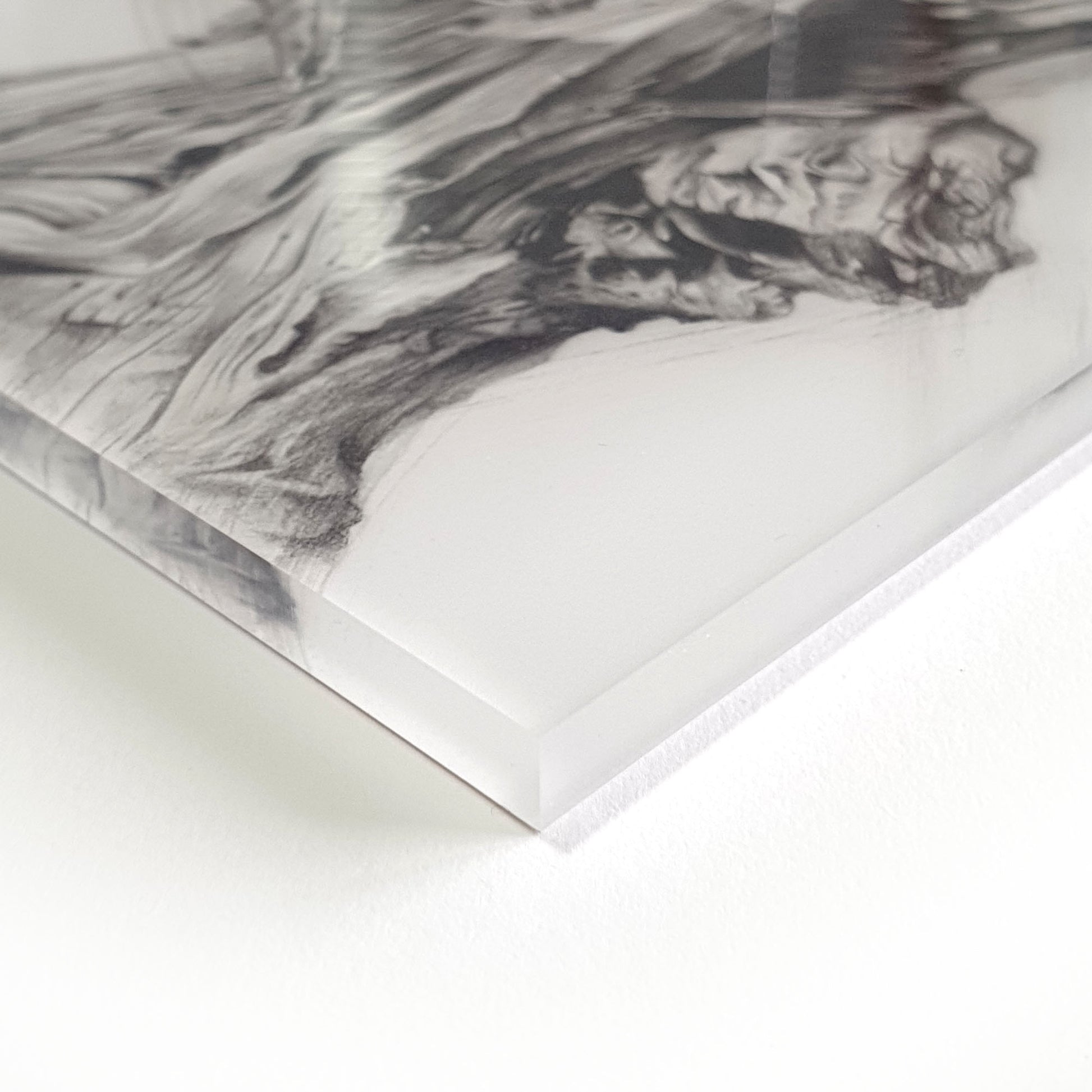 Acrylic print of 'Tawny Frogmouth Trio' charcoal and colour pencil drawing. This contemporary frameless art print is perfect for adding a touch of class to your interior. High quality image printed on 6mm acrylic glass panel using the latest technology. Prints are water resistant and are suitable for hanging in bathrooms, kitchens and other wet areas. Quality fittings are mounted on the back of the print to allow for easy hanging from a standard picture hook. Larger prints have 2 fittings.